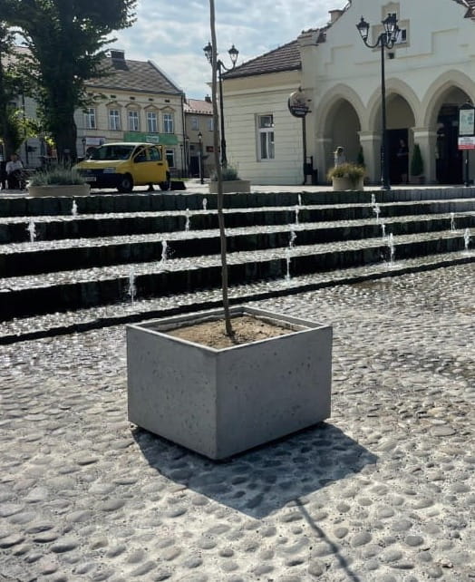 Duża donica z betonu architektonicznego, stworzona do efektownych nasadzeń w ogrodach, na tarasach i w przestrzeniach komercyjnych.