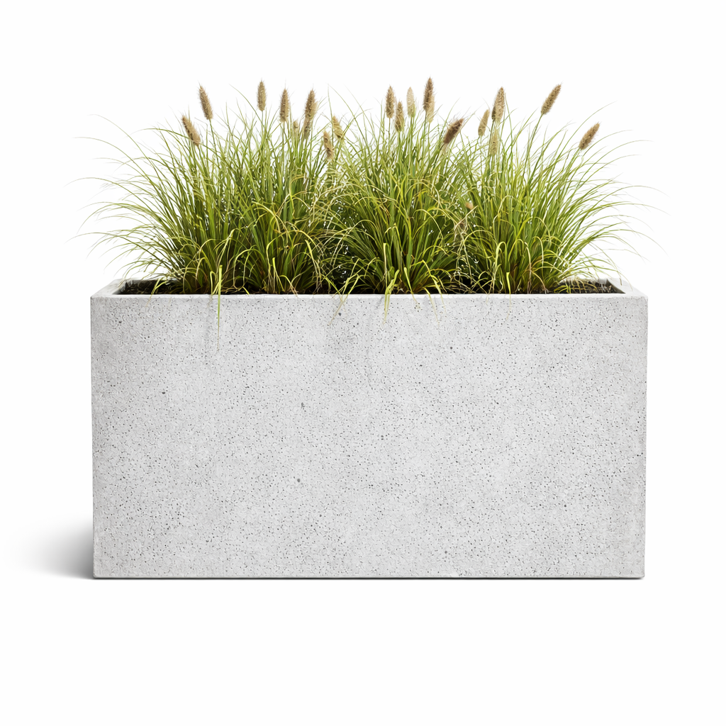 Wysokość donicy pozwala efektownie eksponować rośliny o pionowym pokroju, trawy ozdobne, krzewy czy większe kompozycje sezonowe. Beton architektoniczny nadaje całości nowoczesny, minimalistyczny charakter, a jednocześnie zapewnia trwałość i stabilność w użytkowaniu na zewnątrz oraz we wnętrzach.