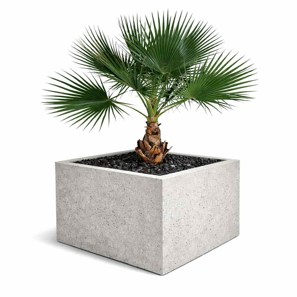Solidna donica z betonu architektonicznego, idealna do efektownych nasadzeń na tarasie, w ogrodzie lub przy wejściu.